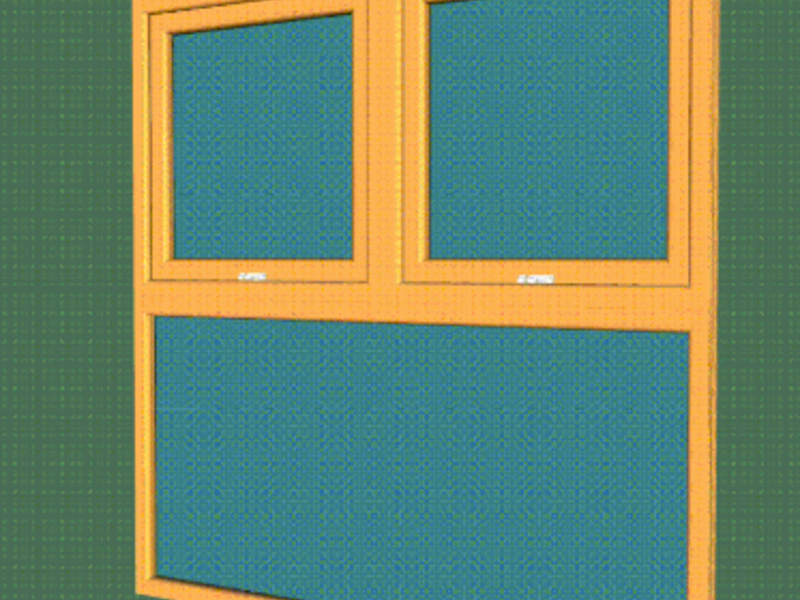 Ventana de apertura exterior cuyo eje de giro está situado horizontalmente en la parte superior de la hoja + Ventana sin apertura en la parte inferior.
