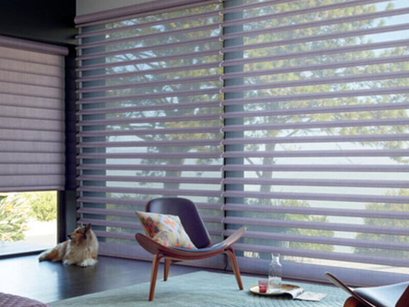 - Las suaves paletas de tela horizontales que flotan sobre un respaldo transparente le permiten lograr infinitas combinaciones de control de la luz, privacidad y visibilidad.