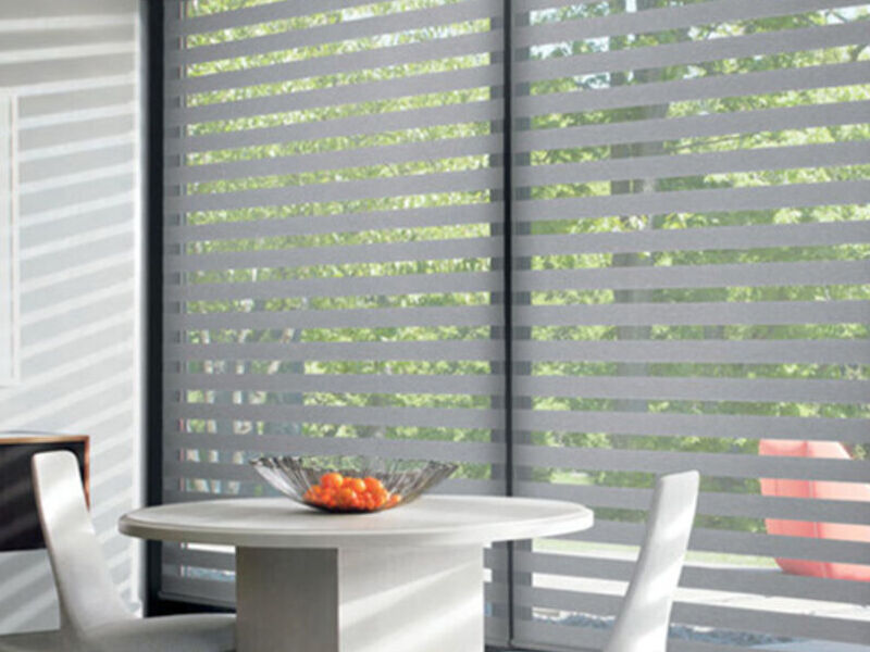 - Esta combinación pura y sólida de bandas de tela es una solución moderna para la visibilidad, el control de la luz y la privacidad.