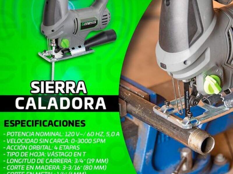 La sierra caladora es una herramienta que sirve para realizar cortes curvos y rectos en madera, metales, plásticos y fibrocemento.