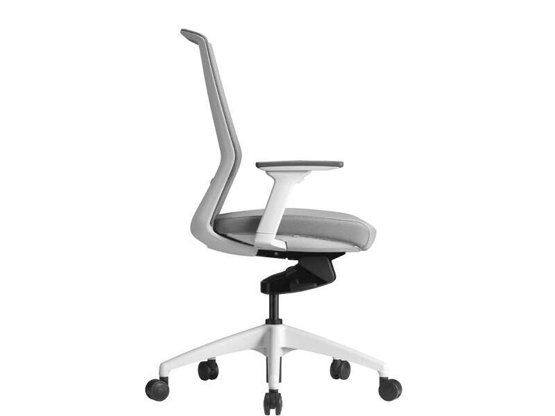 CARACTERÍSTICAS• Ajuste de altura neumático.• Asiento de espuma moldeada de alta densidad tapizada en tela retardante al fuego con aplicación de teflón.• Respaldo en malla de tacto suave con ajuste lumbar.• Mecanismo synchro con regulador de tensión, bloqueo de posiciones y sistema anti-shock.• Brazos con ajustes de altura y rotación con cubierta de poliuretano suave.• Rodajas con capa de poliuretano para favorecer el deslizamiento y evitar rayaduras en el piso.