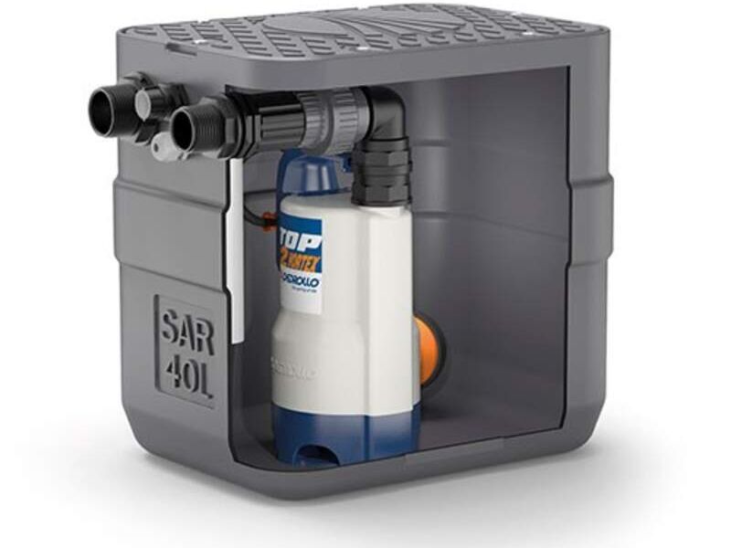 SAR 40. Unidad de recogida y bombeo. Tipo: Aguas negras. Aplicaciones: Doméstico. Usos: Movimiento de agua ligeramente sucia. Tipología: Sumergibles.