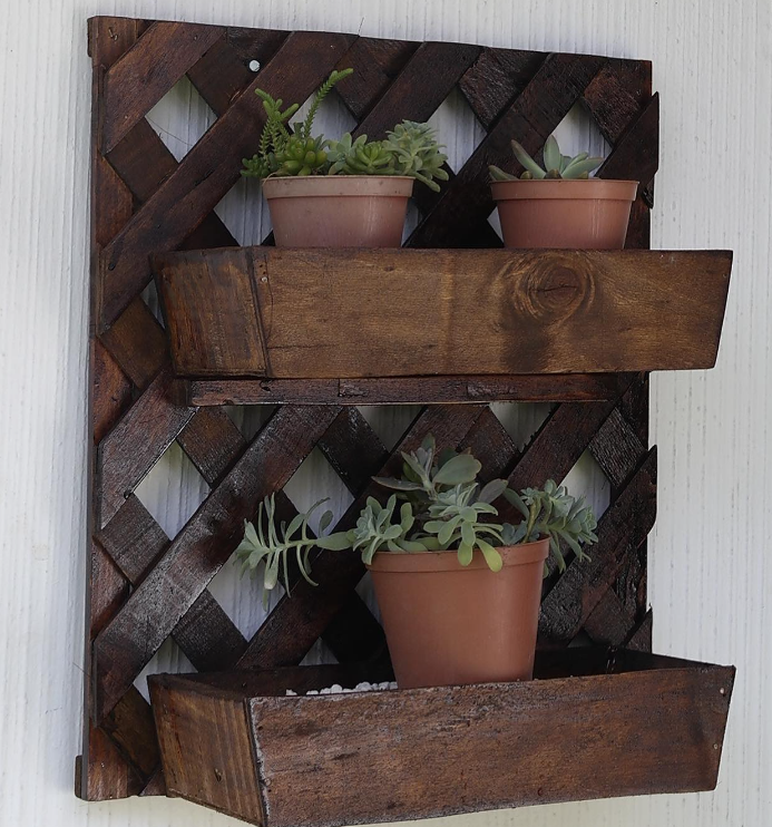 Estanterías de madera diseñadas para exhibir plantas en interiores o exteriores, con un diseño funcional y estético.