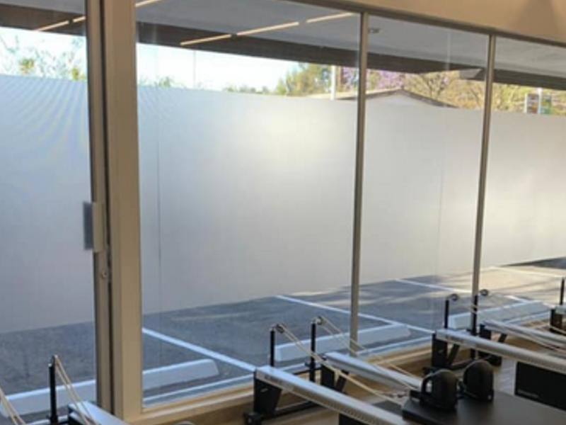 Ventana hecha de Vidrio con Sandblast ideal para lugares de centros de atención