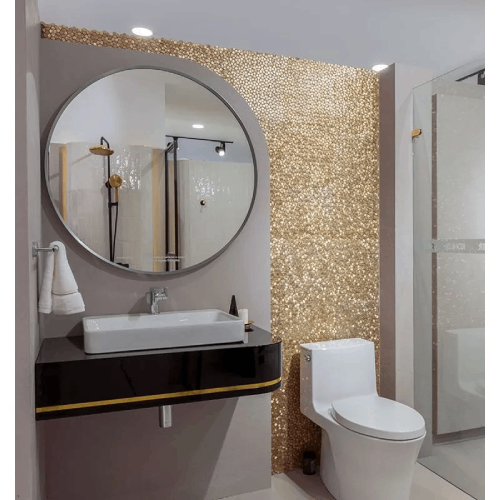 El Mosaico Puls Dorado de Zenth es un revestimiento mural sofisticado que combina el brillo metálico con la elegancia de los tonos dorados. Pensado para realzar espacios interiores con un toque de lujo y distinción, este mosaico aporta reflejo, textura y un carácter decorativo que transforma muros en verdaderos acentos visuales.